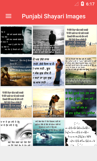 No Punjabi Sad Shayari Images, você encontrará imagens bonitas e shayari tristes com um fundo agradável. É um aplicativo perfeito para expressar seus sentimentos ao seu amado. A melhor coisa sobre este aplicativo é que você encontrará todo o shayari triste com imagens e o melhor fundo.